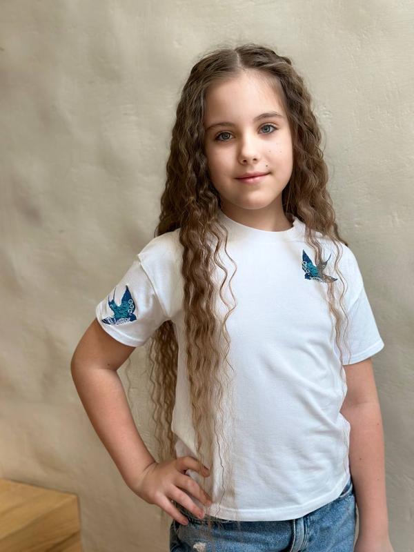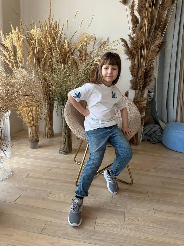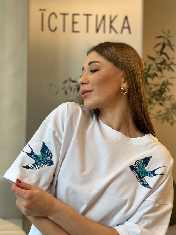 Патріотична футболка вільного крою з вишивкою на рукавах. Тканина натуральна, не просвічується і приємна до тіла.