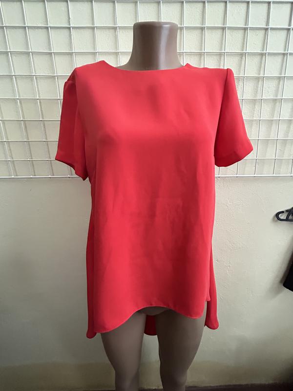 По бірці розмір М Topshop Йде як подовжена футболка/ туніка колір насичений як на фото оранж( персик)Довжина спереді-62 см Довжина по спинці - 86 см Пів обхват грудей - 48 до 52 см