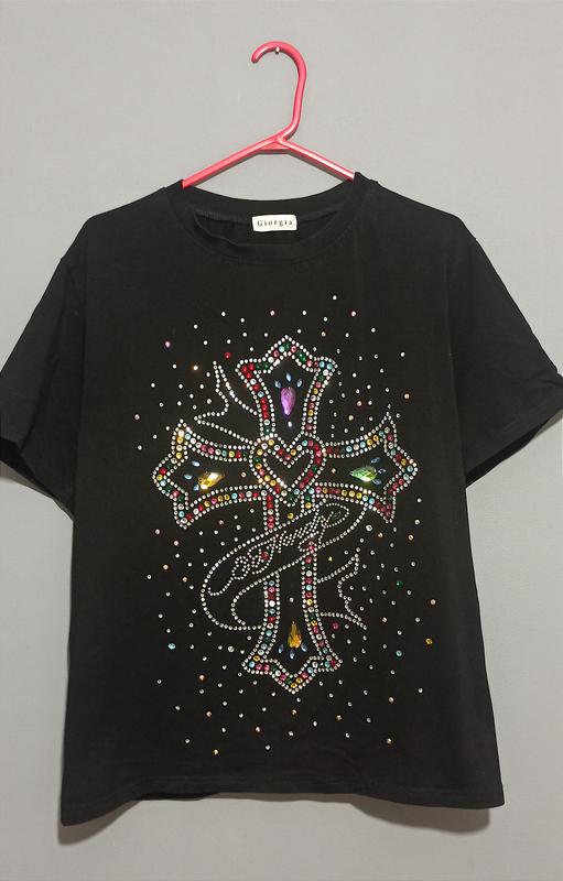 Крутезна футболка з написом Ed Hardy стрази, камінці підійде до будь-яких штанів та шортів крутезний виглядає вживу Довжина-65, під пахвами-52, Низ -53 останнє фото з ціною на сайті нова сток без етикеток
