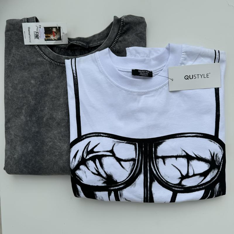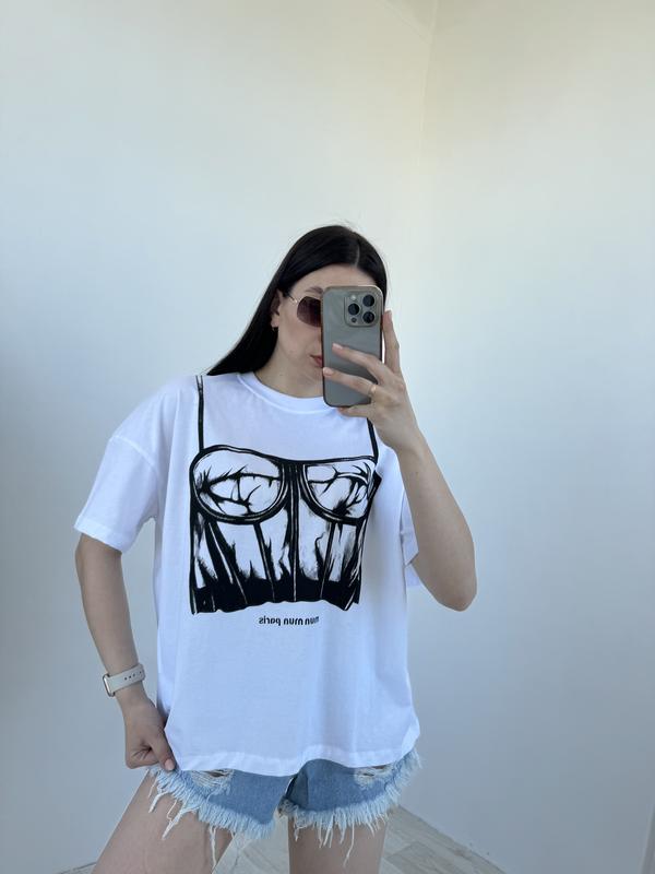 Базова футболка, чорна, біла, оверсайз з принтом, імітація корсета