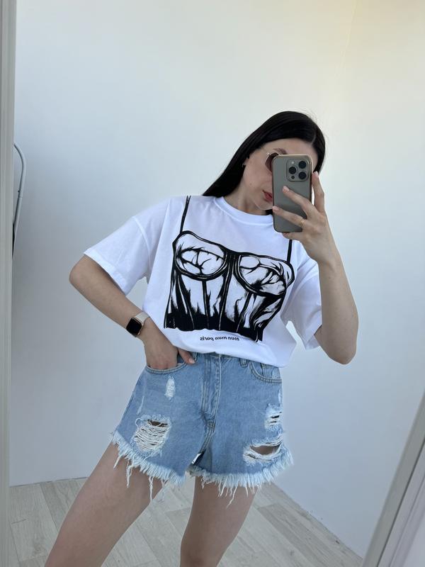 Оверсайз футболка з імітацією ліфа/бюста xs s m l біла футболка бавовна 100% туреччина