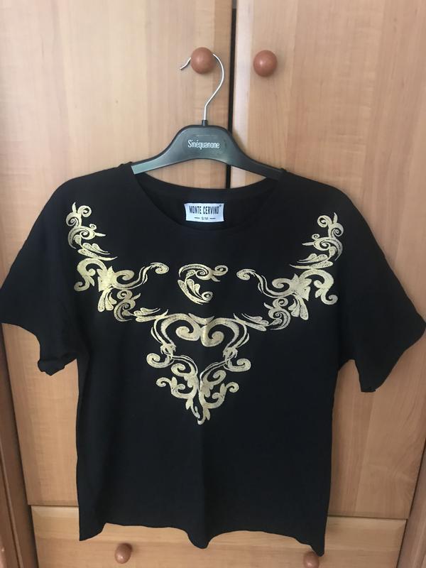 Стильна футболка з чокером від pep&co. футболка з принтом. футболка з золотим принтом