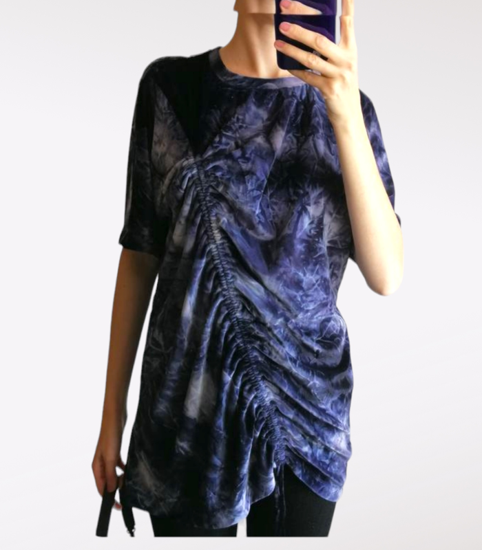 Стильна жіноча кофточка, блуза, футболка виконана з м'якого еластичного велюрового полотна . Виріб гарного силуету, з середніми рукавами без лінії плеча за типом оверсайз,і круглим вирізом горловини.