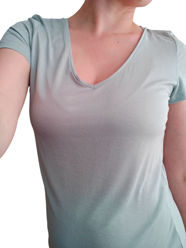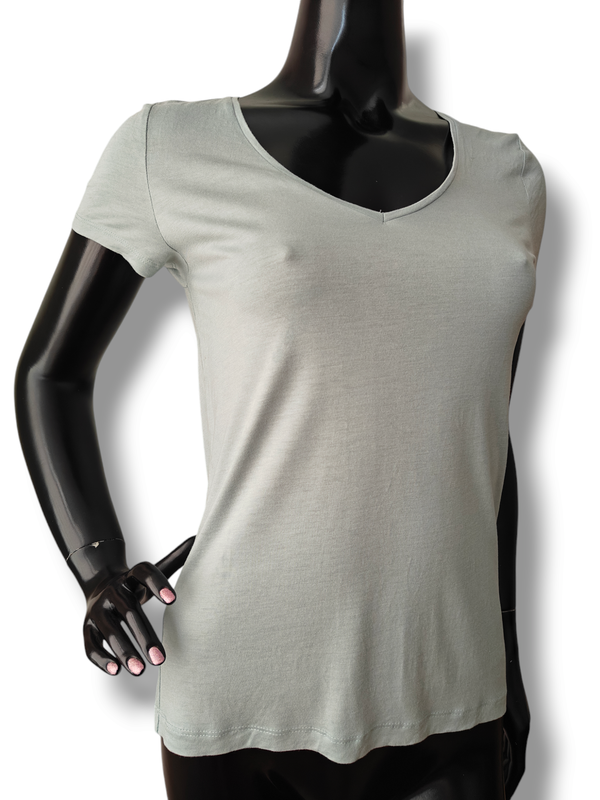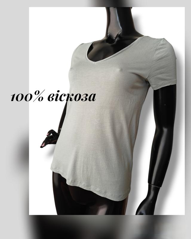 Футболка, віскозний трикотаж, тканина гладенька, як шовк. Дуже приємна до тіла, ніби холодить. Колір сіро-блакитний, вживу дуже приємний, камера не передає.