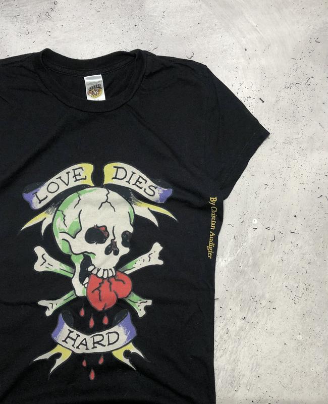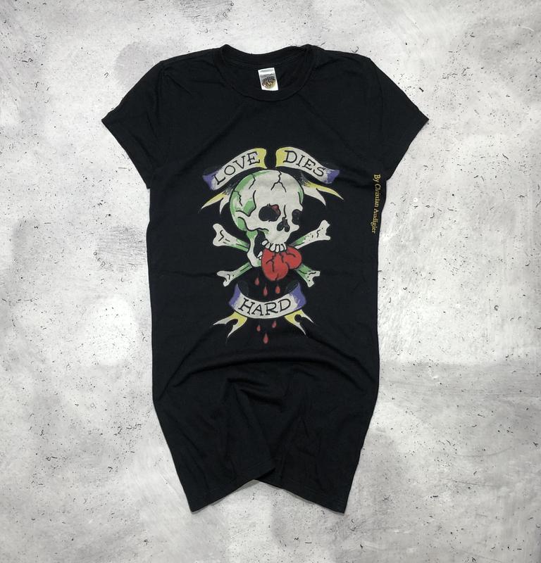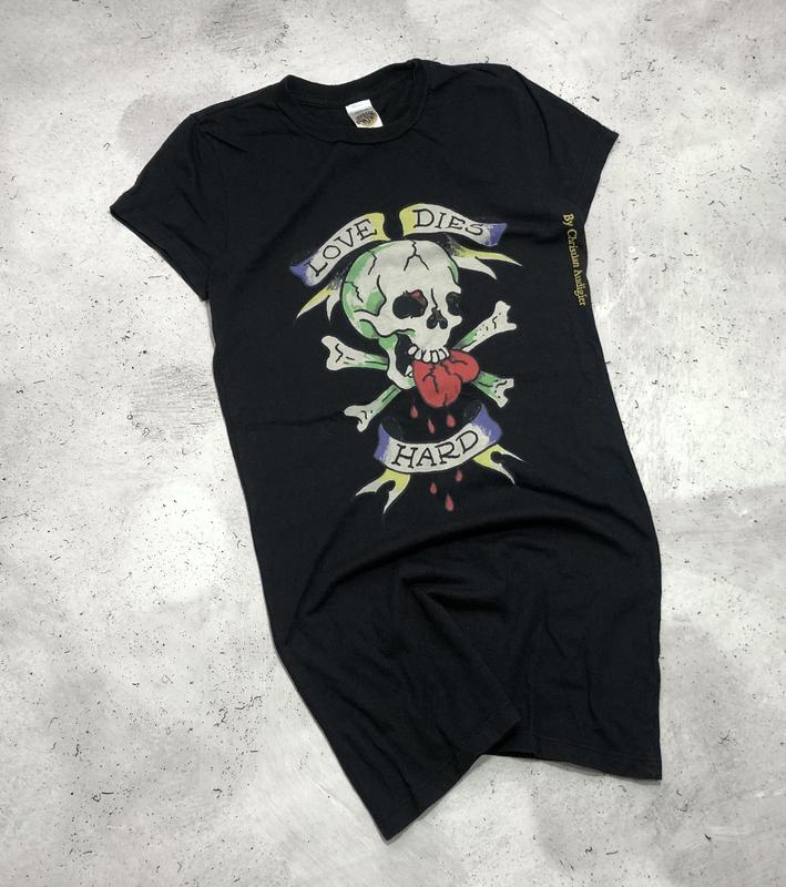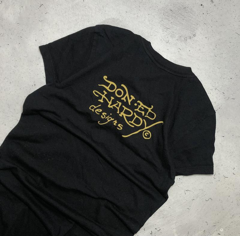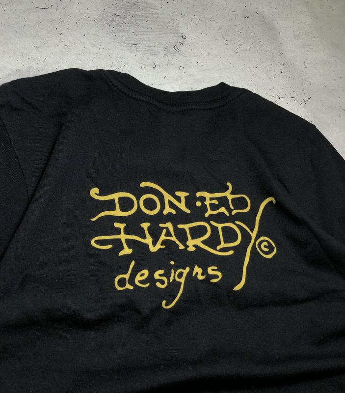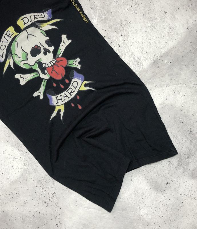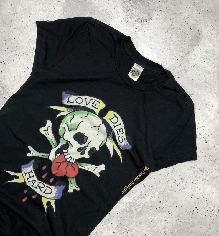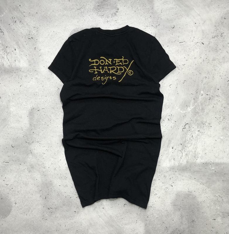 Опиc:Жіноча Футболка Ед Харді,виповнена в чорному кольорі,має великий малюнок з черопом попереду ,а також надпис бренду позаду на спині.
