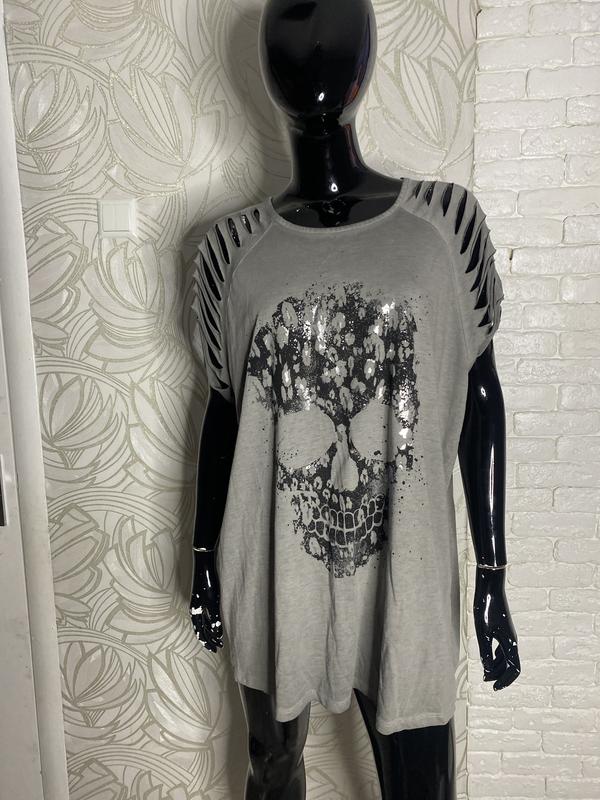 подовжена Футболка у готичний Принт Yours, XXXXL 56р. Довжина 80/85, ПОг 64, ПОБ 66