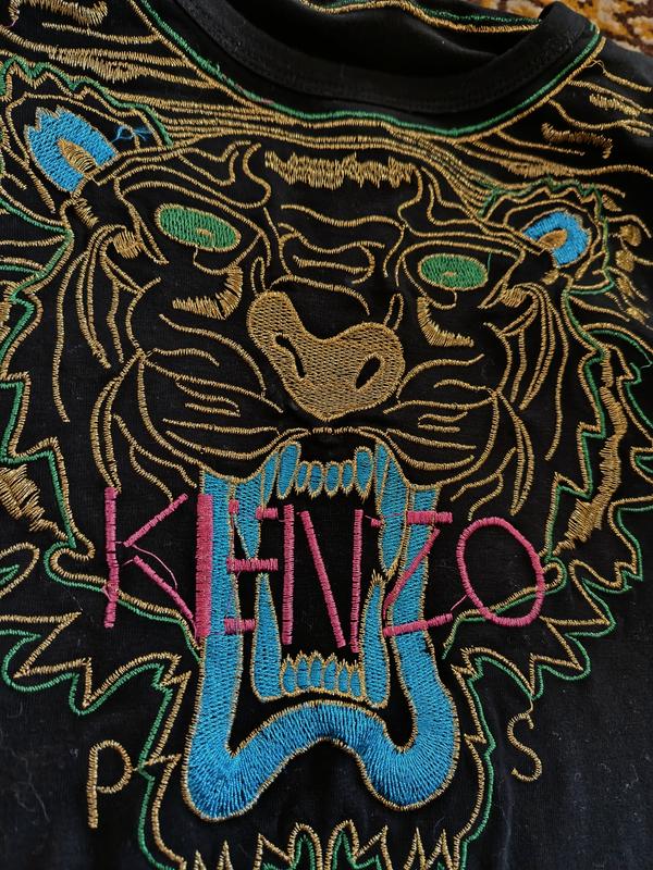 Модная футболка известного бренда. вышивка тигра спереди и хвостик сзади, силуэт тигра который лежит на ваших плечах. очень качественная в идеальном состоянии. размер с-м. не маломерит.