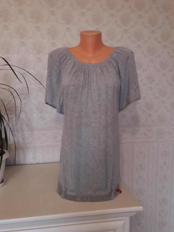 Трикотажна футболка, туніка з обьемными рукавами Esprit, р. S. Добре сяде і на розмір М. Стан ідеальний. Незвичайна стильна річ. Відмінно поєднується з джинсами скінні, вузькими брюками. 100% віскоза, трикотаж. Довжина-75 ПО грудях 46. Мірки тягнуться. НП, УП, Джастін.