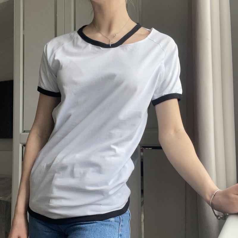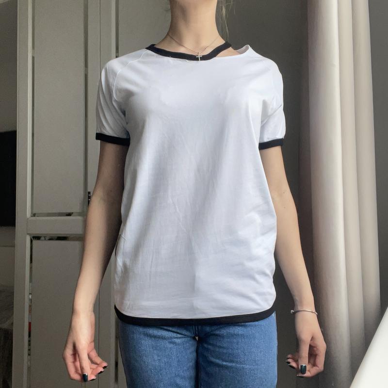 Дуже стильна нова футболка асиметричного крою , ззаду сітка на спині. Повний Білий трикотаж спереду