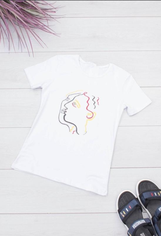 Стильна біла футболка з малюнком принтом дівчина