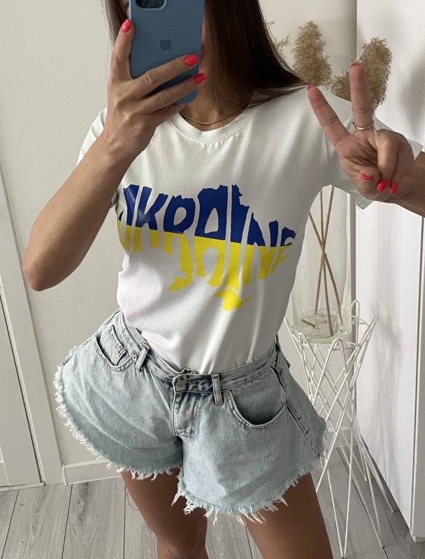 💙💛💙💛💙💛💙💛💙💛💙 Патріотична жіноча футболка з накатом💋💋💋 Модель "1258" Розміри (42-44)(46-48) Ціна - 299 грн Тканина -Кулір(100% бавовна) Кольори -чорний, білий. Якість відмінна!!!