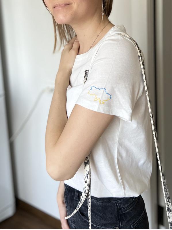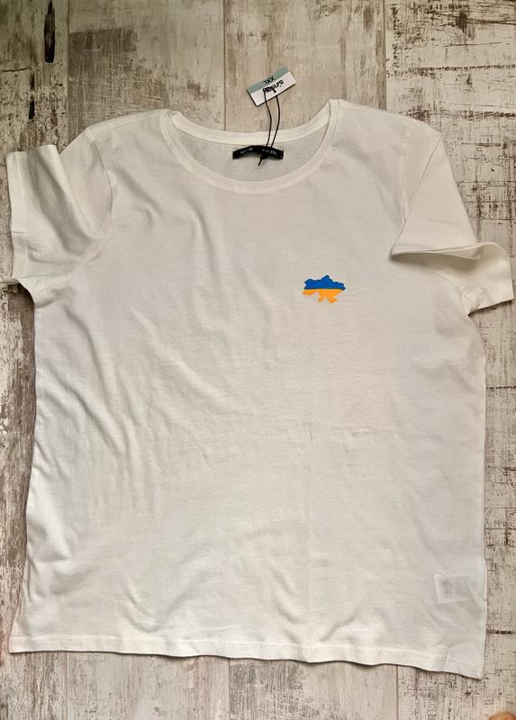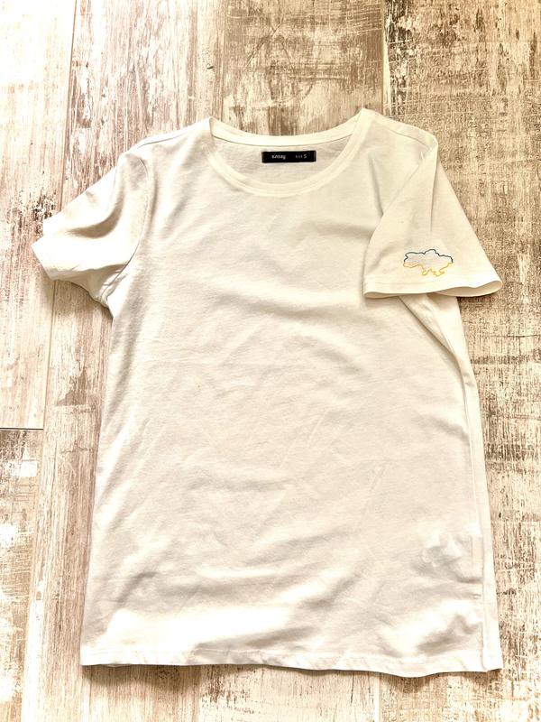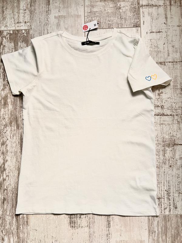 Біла жіноча футболка lc waikiki/лз вайкікі з паєтками на кишені. фірмова туреччина
