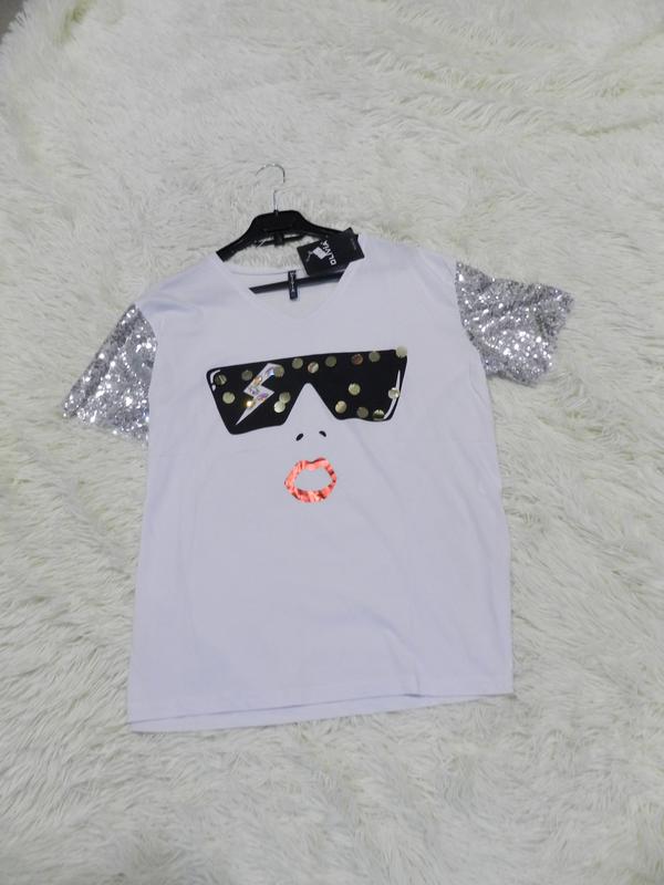 Футболка паєтки камені стрази туреччина завмер*** s-m плечі від шва до шва 49 см пог 56 см...