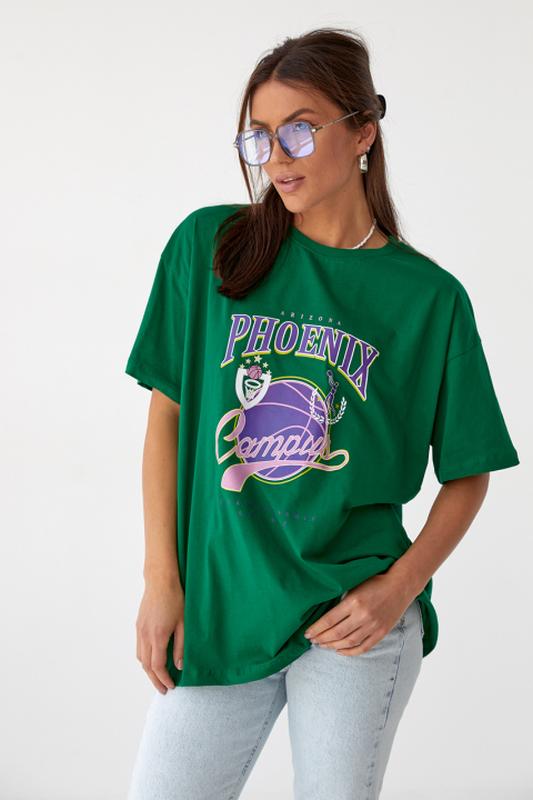Подовжена футболка з принтом – ідеальне поповнення жіночого гардероба. Така річ легко вписується в кожен стиль, від спортивного і casual до ділового. У моделі лінія плеча опущена, рукавчики короткі, кругла горловина обшита вузенькою каймою. Спереду розташований великий принт. Таку футболку можна носити з улюбленими джинсами, спортивними штанами або базовими лосинами
