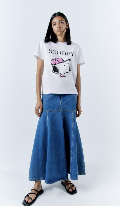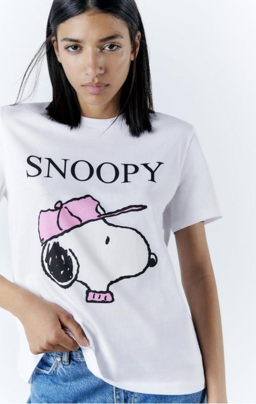 Біла футболка відомого Іспанського бренду 𝐙𝐀𝐑𝐀. Виріб з круглим коміром і короткими рукавами. Принт Snoopy PEANUTS™ спереду. Нова. Без дефектів. З усіма бірками. Склад: 100% бавовна В наявності: 36/S/8; 40/L/12 Заміри S: ПОГ - 50 см ПОТ - 50 см Довжина - 60 см Рукав - 19 см Заміри L: ПОГ - 55 см ПОТ - 55 см Довжина - 63 см Рукав - 22 см