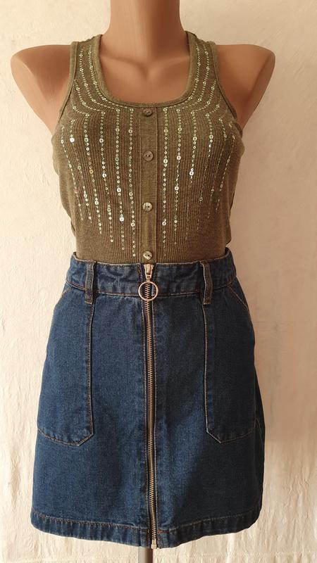 Хорошенька майка з паєтками. Личить до джинсового одягу - ідеально. Колір гарний, зелений. М'яка на дотик, тонка. Тканина тягнеться. Майка у хорошому стані. Колір як на фото. Без дифектів . Розмір S Також орієнтуйтеся по замірам Пог= 35 Довжина 64