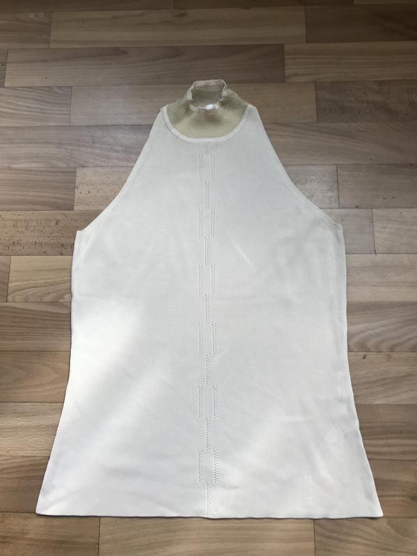 Жіноча американка від бренду Yuka. Виробник-Франція. Колір світло-бежевий. Розмір S/M. Горло стойка із гіпюра з люрексом. Без рукава.Спереду і ззаду -однотонна. Склад:72%район,28%нейлон.