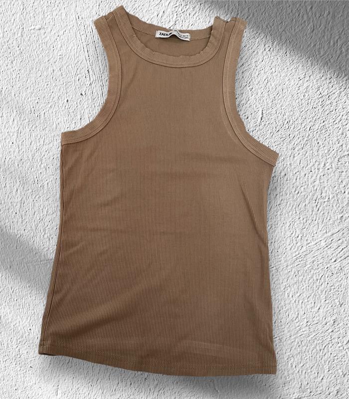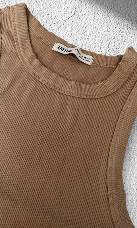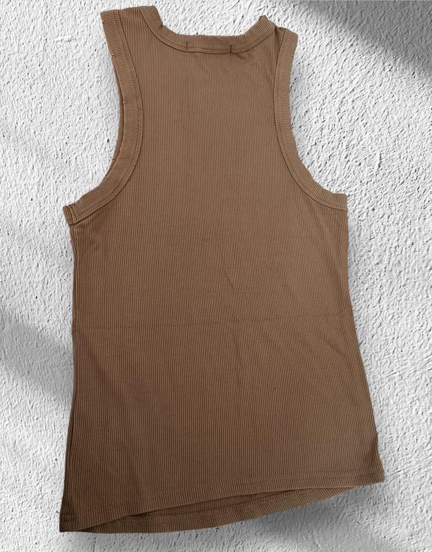 Базовий топ в рубчик в трендовому кольорі.Тканина дуже мʼякенька і приємна до тіла.Майка в стилі під бренд.Розмір М в наявності,підійде також і на С.