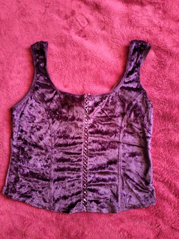 майка велюрова, абсолютно нова з етикетками, довжина з брительками 49 см, від грудей 33см, напівобхват в грудях 43см. деталі уточнюйте, можливі додаткові фото.