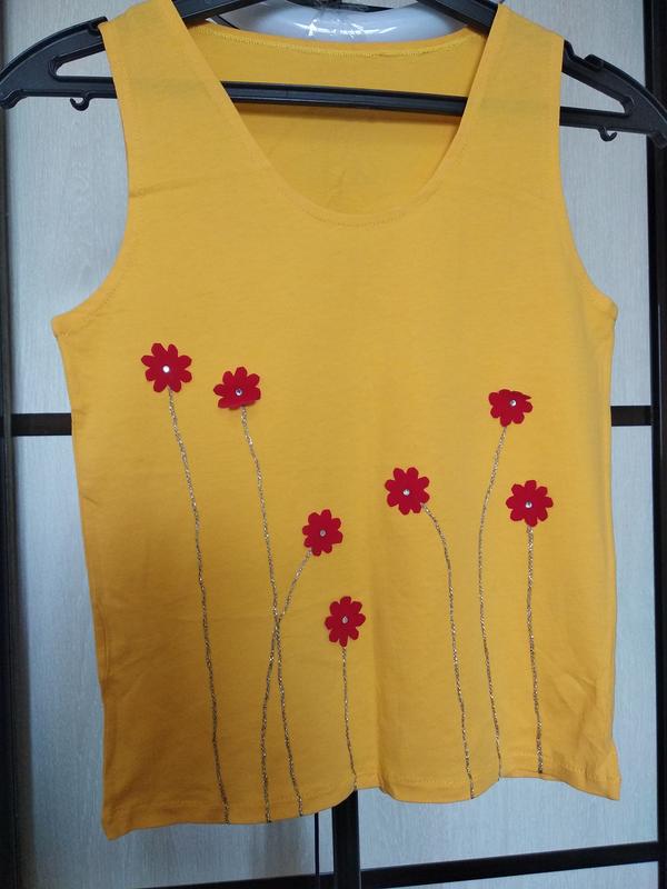 Жовта майка з аплікацією червоні квіти національні мотиви розмір - 40-42