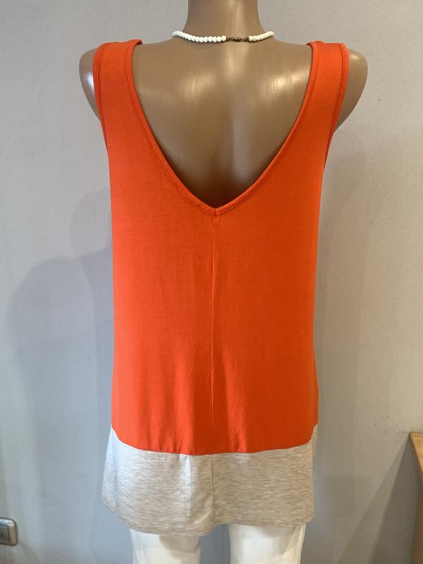 Яскрава трикотажна двоколірна подовжена стрейчева трикотажна майка. Склад віскоза, ефектна, яскрава,гарно тягнеться. Пог 46-56 см, ПО низу 62 см, довжина 70 см