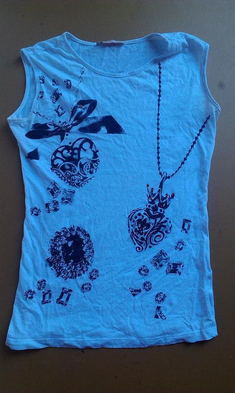 Футболка маєчка з оригінальним принтом дикорирована камінчиками євр 38 бренд Колінс Німеччина