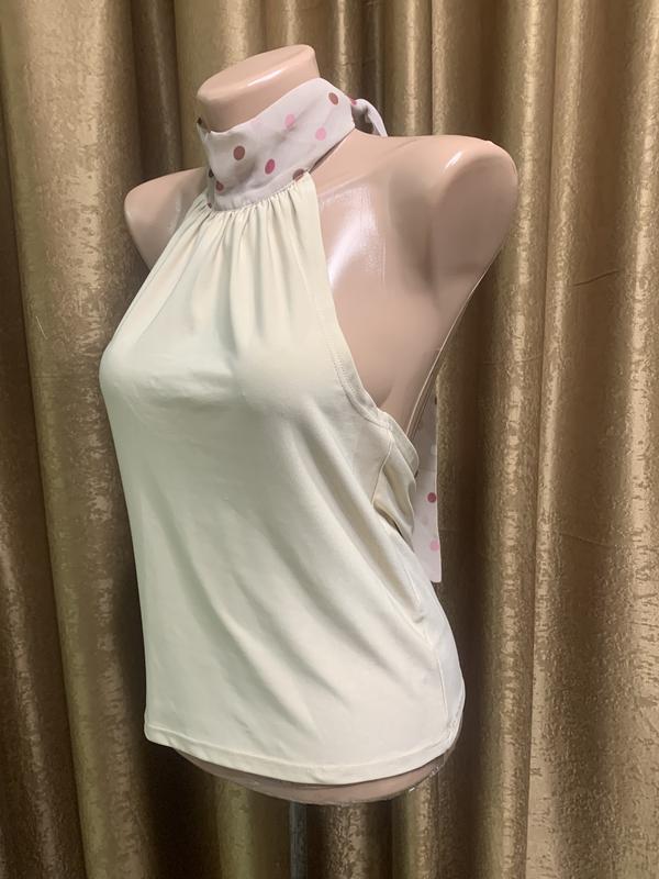 Майка мерехтливої кольору H&M з шифоновою зав'язкою на шиї розмір M Довжина 46см Напівобхват грудей 39-49см Напівобхват талії 33-49см Напівобхват стегон 42-54см