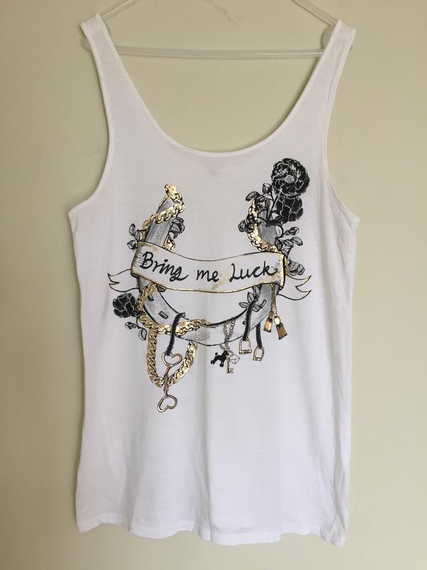 Стильна футболка з принтом розмір s/m напівобхват грудей 40-47 см довжина з бретелями 65 см
