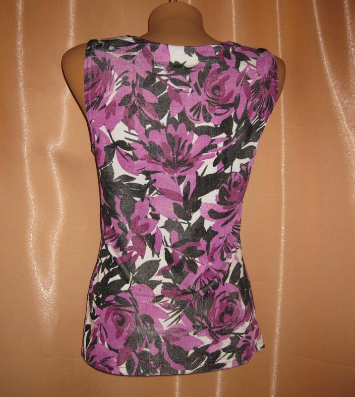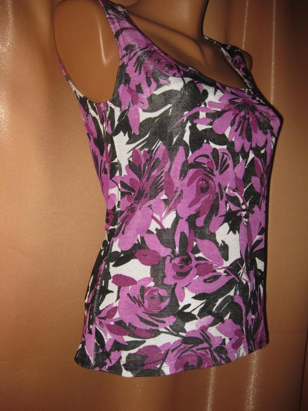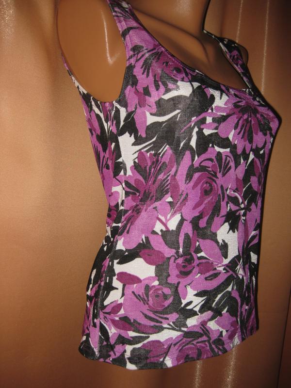 Майка в рубчик, S, Англія, км0931, Reflections, Made in UK з квітковим принтом, дуже добре тягнеться зазначений розмір на виробі – S, якщо в обтяжку носити то підійде і на L і XL. Стан ідеальний, як нова – немає пошкоджень, ні розривів, ні плям, дивіться фото, якщо тут не збільшується –надішлю додаткові за запитом. Виміри: ПО пахви 43 см в нерозтягнутому вигляді, тягнеться до 70 см, стегна напівобхват по низу 49 см і добре тягнеться, довжина виробу по спині 56 див. "якщо вас цікавить якась річ, але є сумніви або питання, то пишіть. намагаюся всім відповісти. дивіться всі оголошення. при покупці двох (відразу або протягом місяця) або більше промов можливі знижки до цілих 20-50% !!"