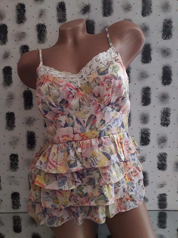 Річна стильна маєчка. Квітковий принт.Тканина гладка,не тягнеться.Бічна змійка розстібається майже до низу. Класно виглядає. Пог 39 Піт 34 По низу 43 Висота по боковому шву 37 Бретелі регулюються. Поліестер. Обміну та повернення немає. Оплата 100% на карту. Нова,укрпошта. Всім відмінних покупок!