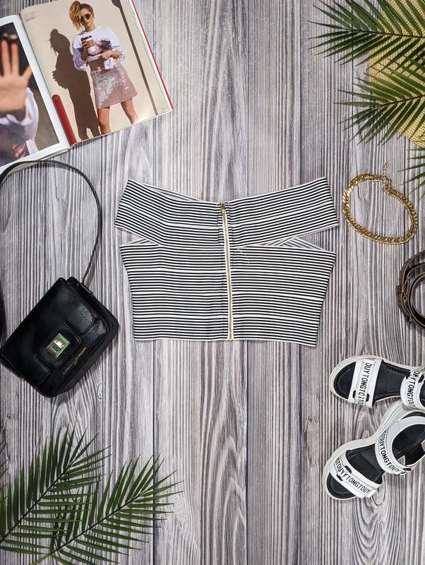 Трендовий бандажний топ. Плечі спущен. Застібається ззаду на металеву блискавку. Тканина дуже щільна. До тіла не груба, не колеться. Не просвічується, дуже добре тягнеться. Сідає по фігурі.