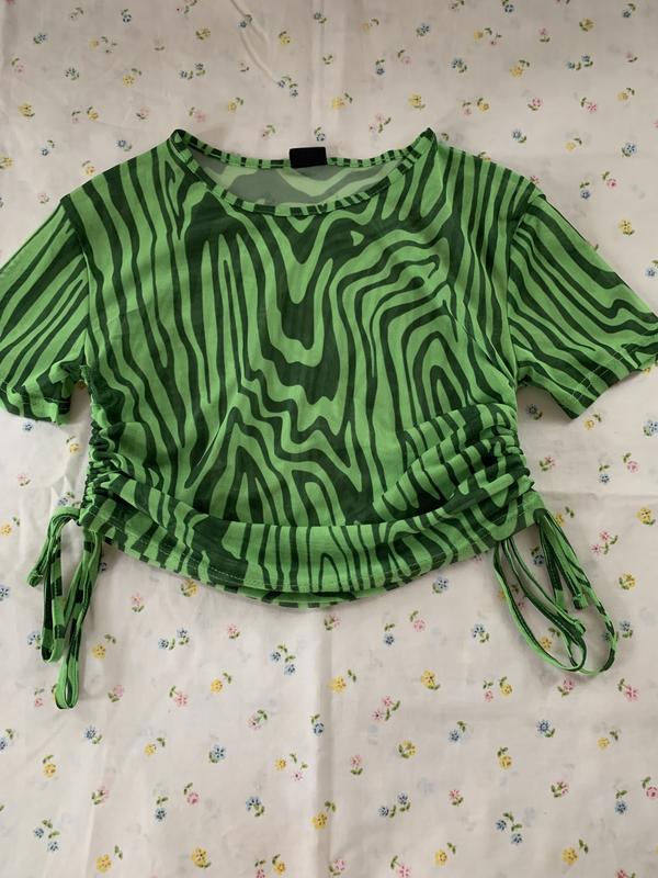 Топ топік кофта кофтинка водолазка прінт салатова салатовий принт прінт сітка сітчатий сітчата прозора прозорий кроп коротка короткий рукави кльош