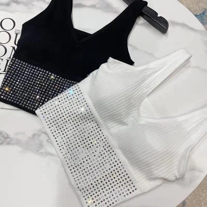 Рифлений топ зі стразами. Є вставний цільний поролон-коректор, матеріал - поліамід. С-м м-л