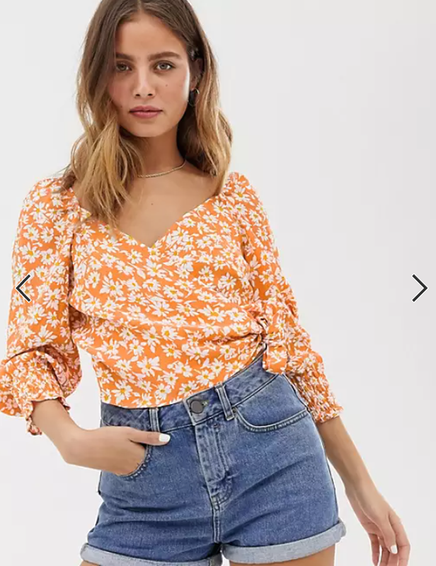 Помаранчевий топ на запах bershka/блуза квіткового принту/оранжевий топ. квітковий принт