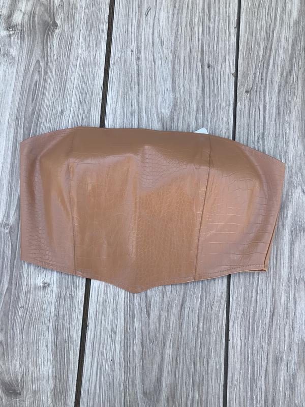 Топ бандо топ-бандо з екошкіри топ полоса коричневий топ шкіряний топ plt