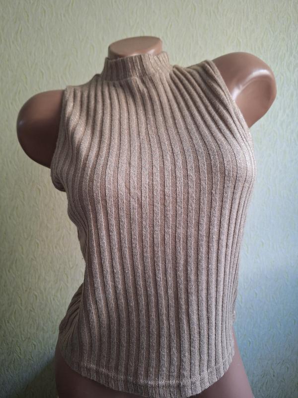 Гольф у рубчик. в'язаний топ із горловиною. тепла футболка американка. бежевий, люрекс.