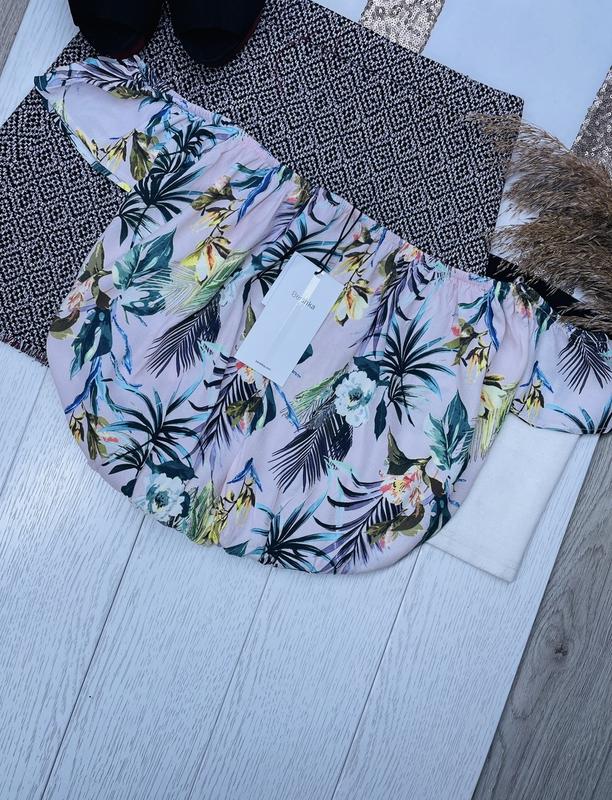 ✨ Короткий топ Bershka в квітковий принт Розмір:S Стан:нова,з біркою. Склад:100%візкоза. Особливості:тоненький літній топ з крепового трикотажу.Груди та талія на гумці.Спущені на плечі коротенькі рукава . ФОТО НА ТІЛІ НЕ РОБЛЮ! Заміри(від шва до шва): Рукав-8; ПОГ-33,тягнеться до 56; Півобхват талії-27,тягнеться до 43; Довжина-32