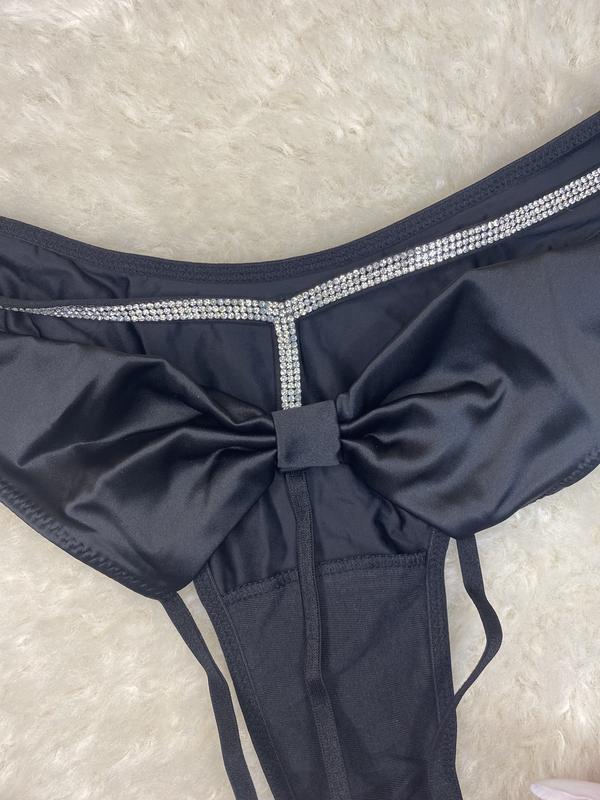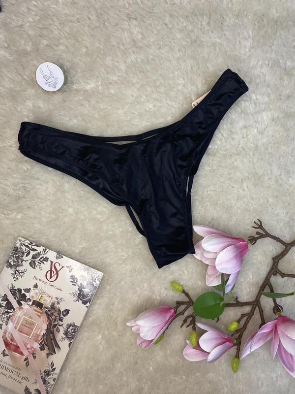 Трусики Victoria's Secret бразиліана атласні Very sexy з камінням еротичні відкритий доступ чорні