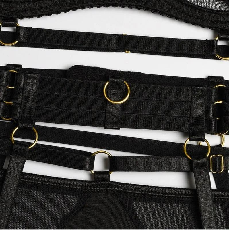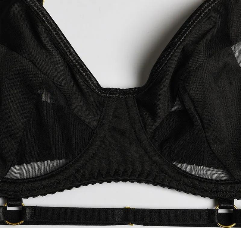 Неповторний комплект жіночої білизни із 3 предметів. Матеріал: поліестер Розмір: S, бюст 75-80 Колір: чорний