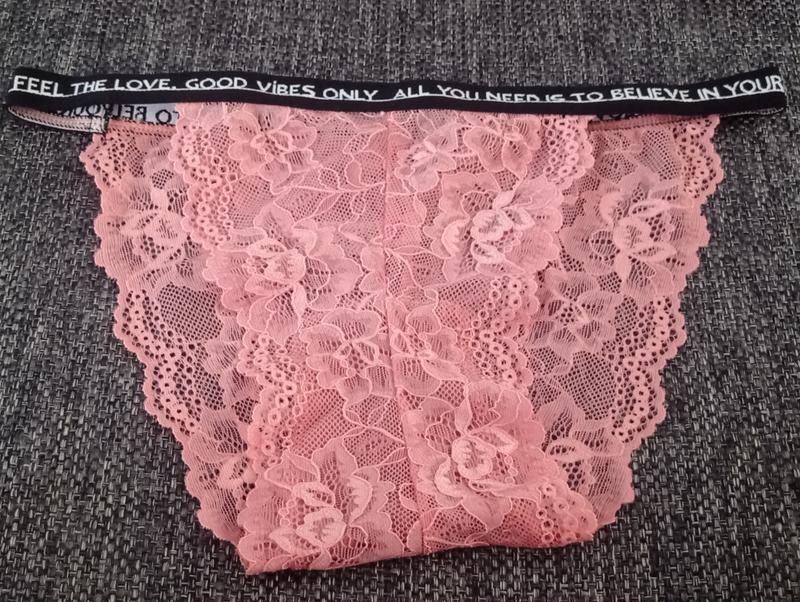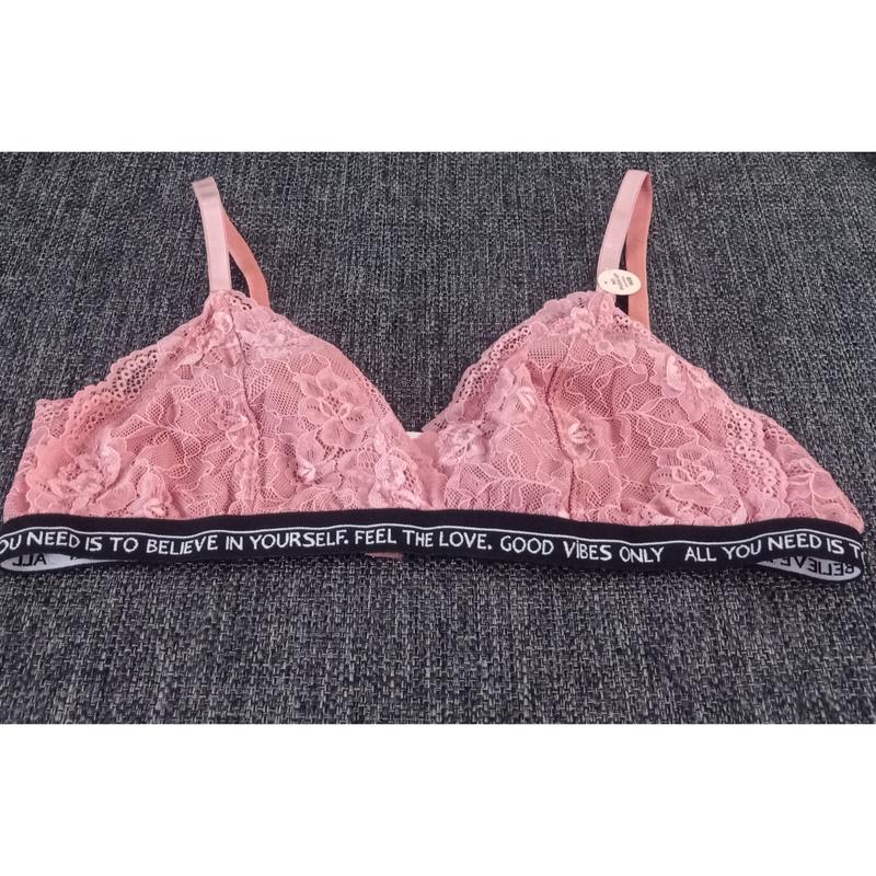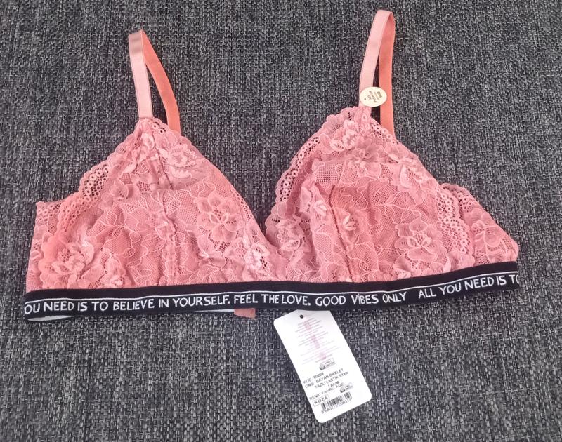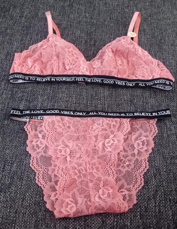 Комплект нижньої білизни. В наявності один розмір 90вКомплект з рожевого мережива. По верху трусиків і низу ліфу чорна резинка товщиною в сантиметр. Чашка без паралону. Ліф на гачочках.Повернення немає.