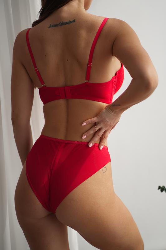 Цей набір включає класичний пуш-ап бюстгальтер з мереживними стрічками та з'ємним ланцюжком, що додає йому шарму та стилю.Бретель бюстгальтера незнімна, але зручно регулюється по висоті, гарантуючи ідеальне прилягання.До комплекту також входять мереживні трусики середньої посадки, що додають жіночності та елегантності.Погрузіться у світ розкішної білизни та відчуйте себе особливо кожен день.