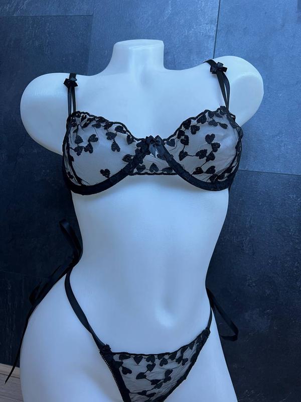 Напівпрозорий комплект нижньої білизни з візерунком у формі серця, бюстгальтер і трусики для нижнього одягу, жіночий сексуальний одяг