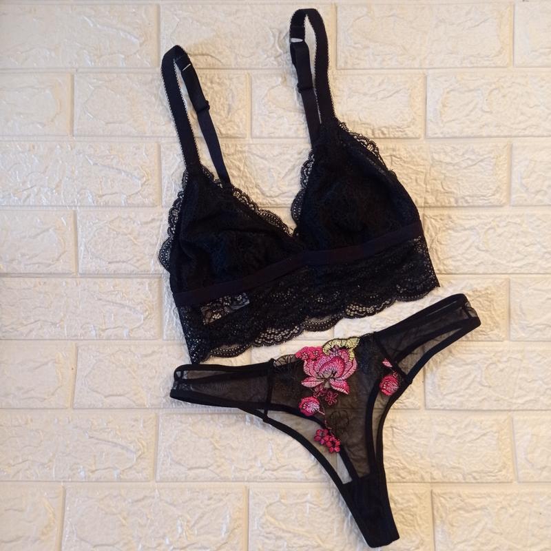 Розпродаж! комплект трусики бра топ мереживний чорний р.л