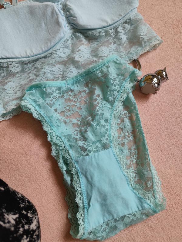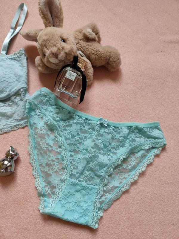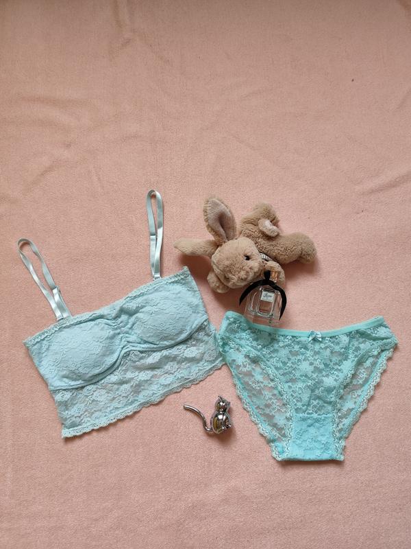 набір білизни р 42 34 xs блакитний мереживний прозорий топ трусики