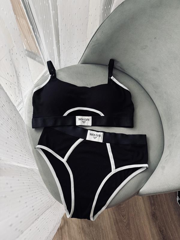 Бавовняний базовий комплект топ з вирізом та трусики високої посадки