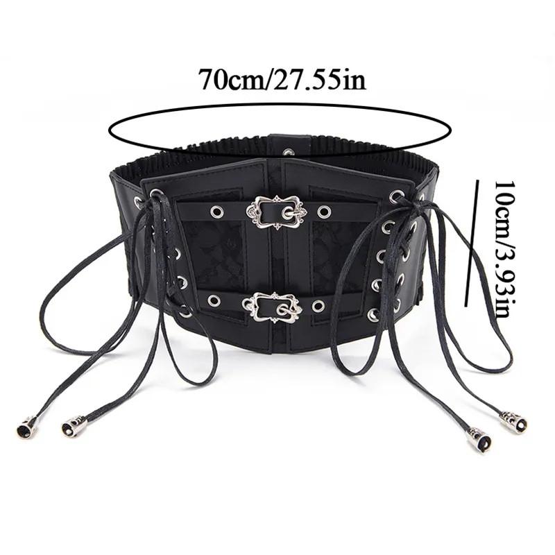 Шкіряний корсет на шнурівці, еластичний корсет на липучці, корсаж широкий пояс зі шнурівкою чорний