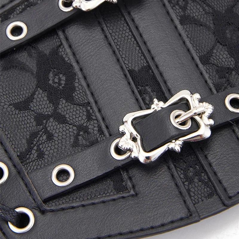 Шкіряний корсет з вишивкою на шнурівці, еластичний корсет на липучці, корсаж широкий пояс зі шнурівкою чорний
