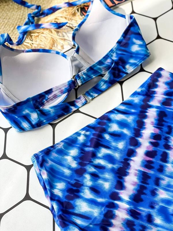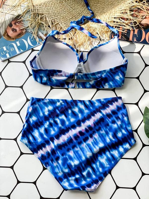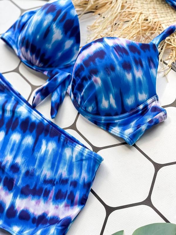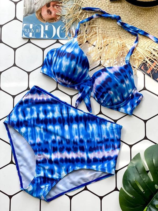 Стильний базовий купальник подвійний, бретелі(на шию) та спинка регулюється, бікіні високі зариті. Яскравий принт.