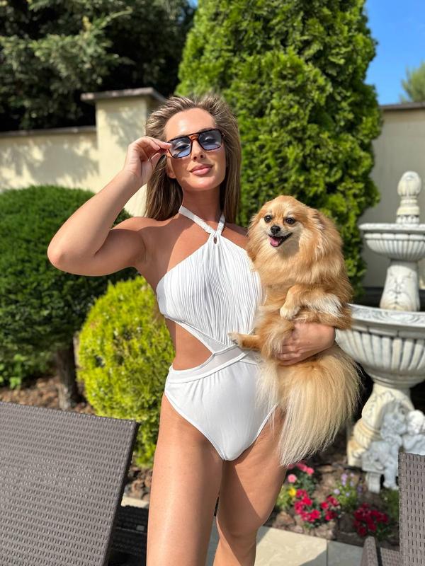 Базовий купальник монокіні з горловиною халтер, шия та спинка на зав'язках, високі бікіні! Прикрашений фігурними вирізами, тканина комбінована: гладка/фактурна.
