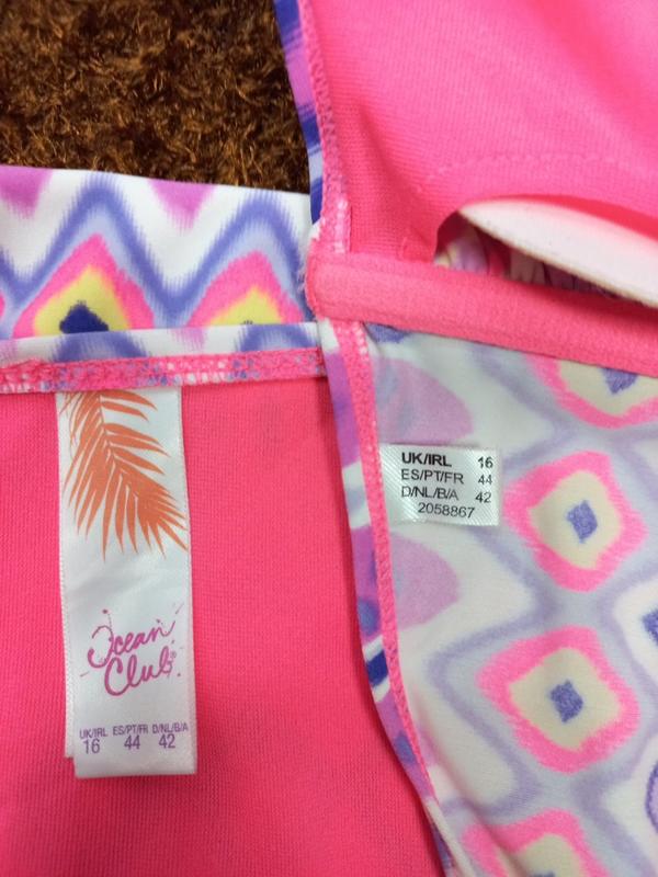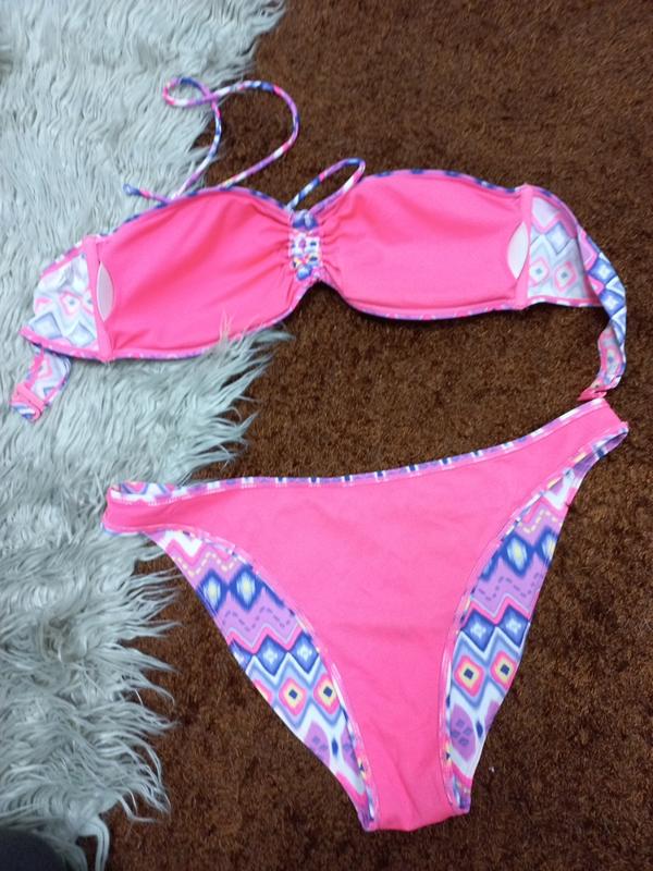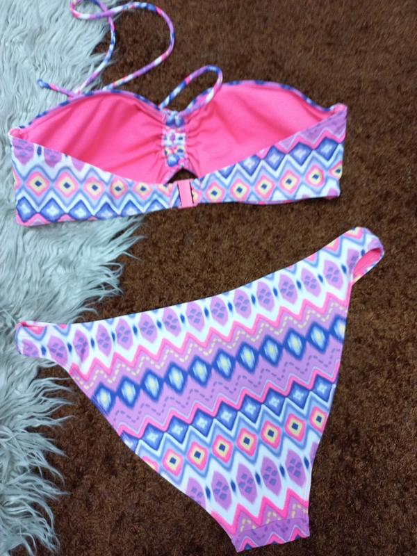 Купальник роздільний, розмір 14-16, ліф з поролоновими вкладками, об'єм 40см, трусики об'єм 44см, висота 27см.